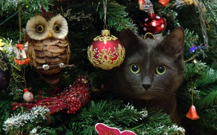 А уж если дерево большое, то домашним любимцам определённо есть где разгуляться. И для них наступает время пряток – самой новогодней игры.