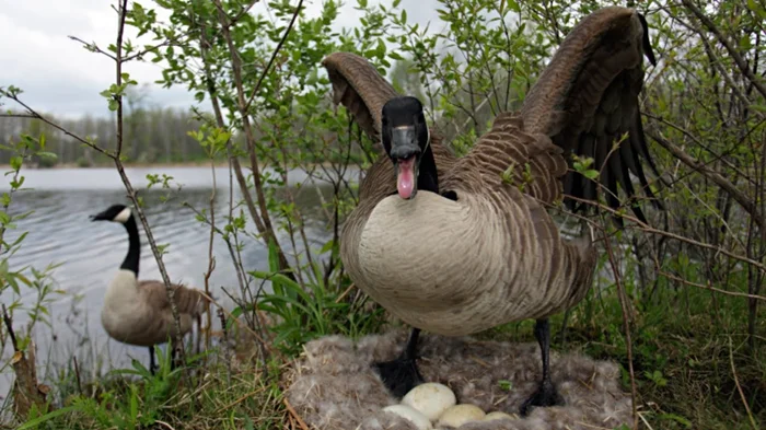 У некоторых видов наседное пятно не образуется. У гусеобразных, например. Потому что в водичке прохладно голяком плавать. Водоплавающие пернатые греют кладку лапами — обнимают своих растущих деток.