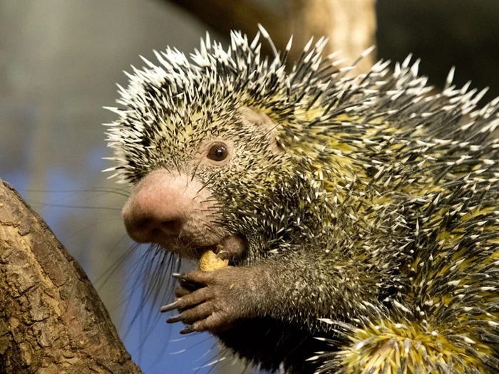 Отличить дикобразов Нового света от дикобразов Старого можно по характерному выражению морды лица, необычному окрасу, размеру и образу жизни. Пойдём с начала: носик животины выглядит так, будто она сунула его в пчелиный улей или сходила к плохому пластическому хирургу. Такого, конечно, не было, и носопырка их абсолютно натуральная. Но картошка на пол лица по сравнению с аккуратными маленькими глазками и совсем незаметными ушками смотрится немного странно.