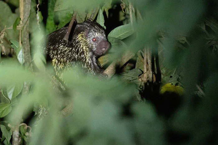Ну а если посмотреть на двухцветных дикобразов повнимательнее, можно кроме иголок заметить очень необычную детальку — длинный толстый и полулысый хвост. Выглядит он как дикобразу пятая нога, да и используется примерно также: животины бо́льшую часть своей жизни проводят на деревьях, где лишняя конечность очень даже кстати. С помощью полуцепкого хвоста и длинных когтей на лапах звери отлично карабкаются по веткам и добывают пропитание с самых верхушек — фрукты, семена, листья и прочую зеленушку.