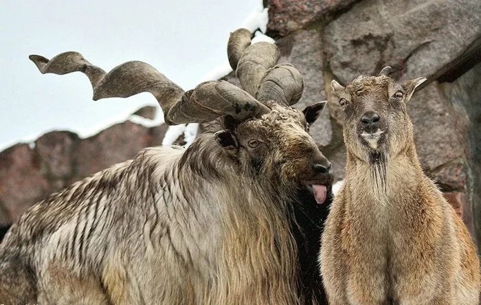 Винторогий козёл, или мархур, — один из крупнейших представителей семейства горных козлов. Встретить их можно в горах Южной и Центральной Азии. Надо сразу отдать им должное, выглядят мархуры впечатляюще — одни рога чего стоят! У матёрых самцов они могут вырасти до 160 сантиметров в длину по спирали. К слову, длина рогов северного оленя примерно 150 сантиметров.