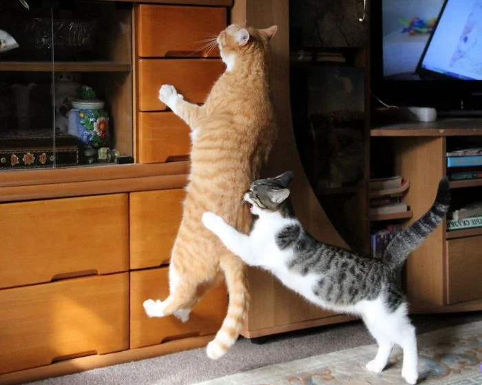Вскрывай ящик, тащи валерьянку, а я на шухере постою.