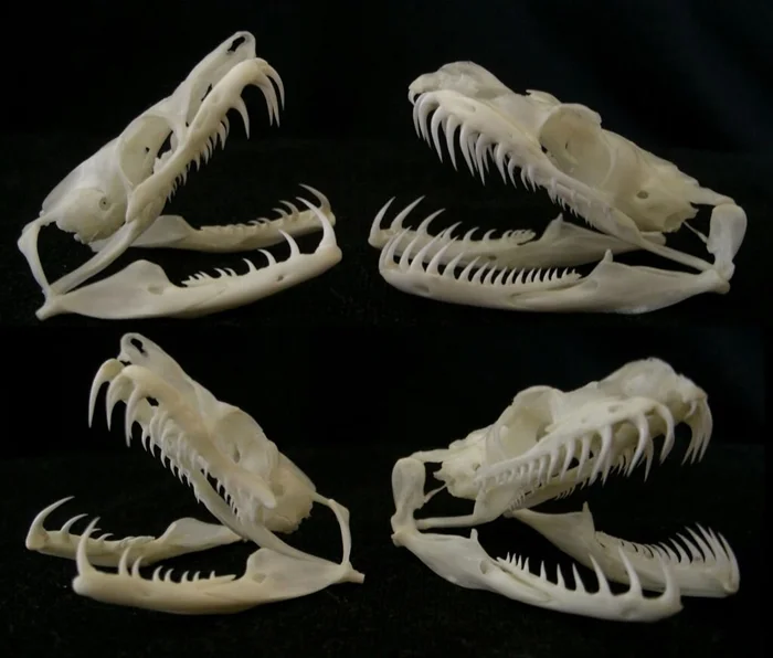 Зубы класс. Обратите внимание на отсутствие соединений нижней челюсти. Эта фишка помогает змеям глотать добычу намного больше себя.
