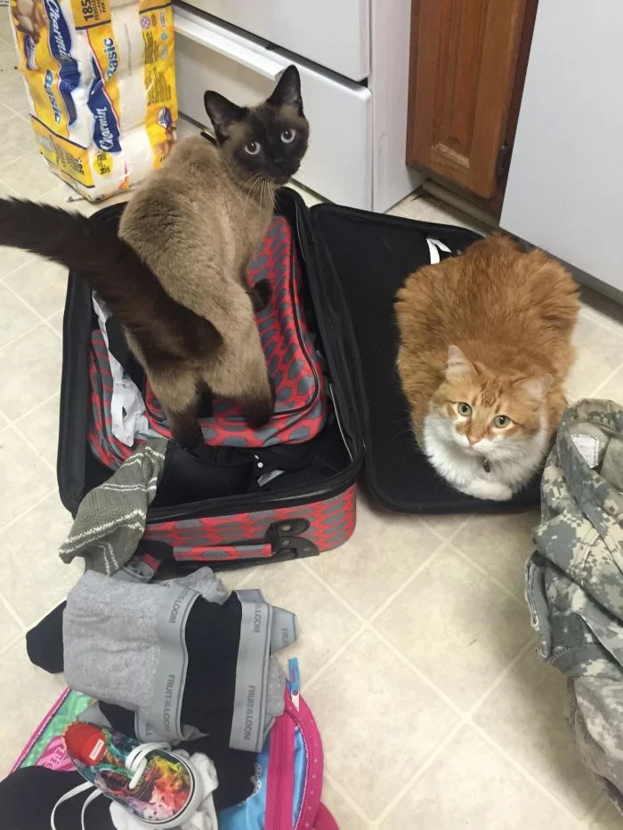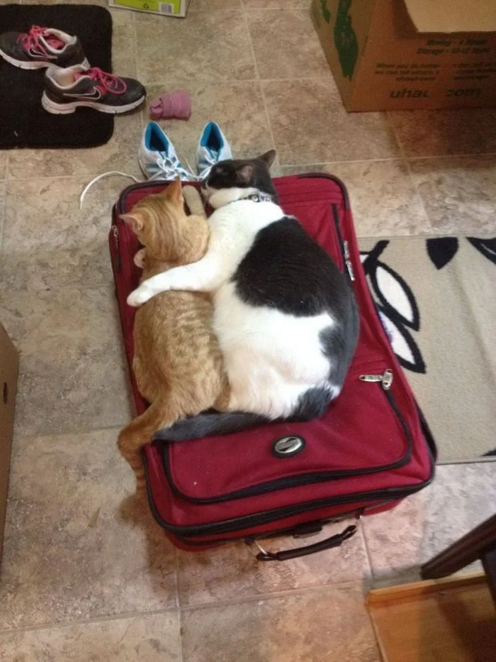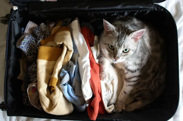 Убирать вещи, организовывать их, тщательно скрывая как полезные, так и ненужные предметы под кроватью, выражать важные моменты громким и радостным мяуканьем, и, используя свою пушистую тушку, измерять вместимость чемодана и дорожной сумки — все это делает кот, стремясь поскорее завершить хаос и избавиться от волнений, чтобы насладиться заслуженным покоем и тишиной. Возможно, даже мелькает мысль о совместном отдыхе, но в конечном итоге предпочтение отдается уютному дому.
