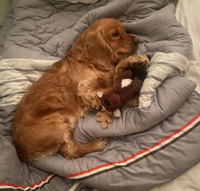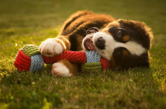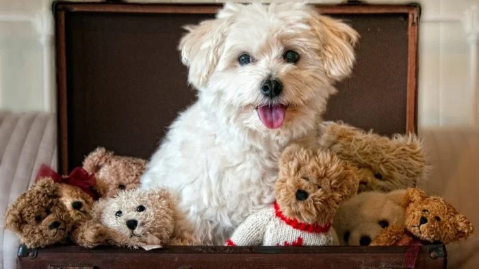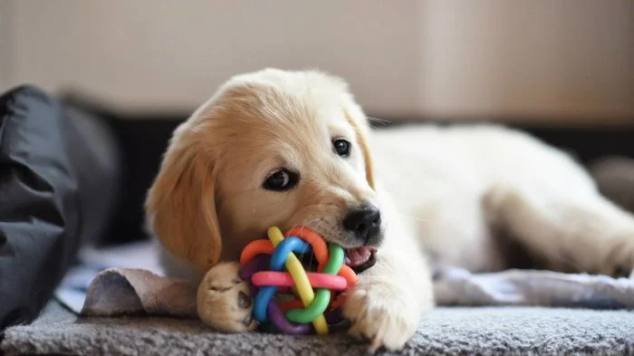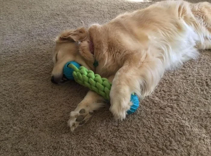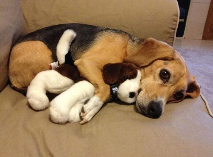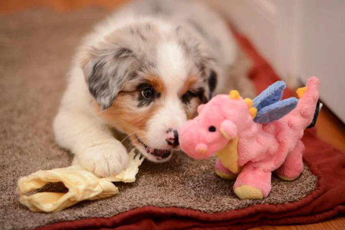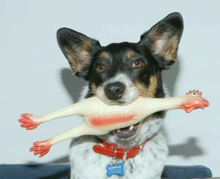 Или, как минимум, вызвать улыбку. Поскольку пёсели со своими любимыми игрушками смотрятся очень трогательно и забавно.