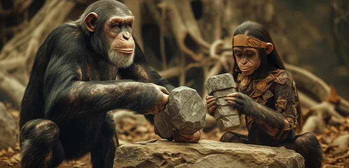 Шимпанзе обладают более развитыми способностями к изготовлению инструментов и, возможно, уже вступили в ранний каменный век.