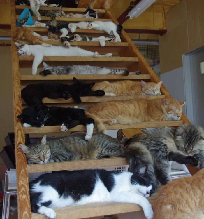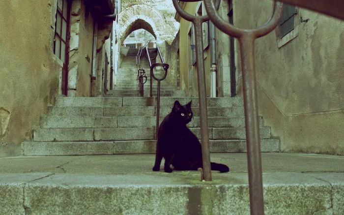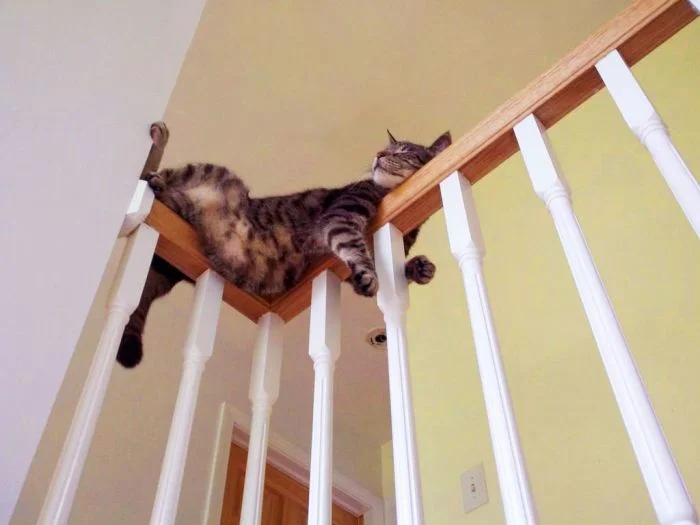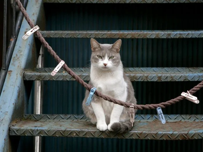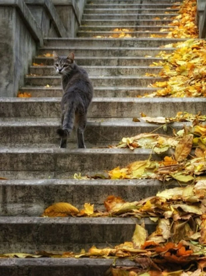А если по нему прошествует, на секунду остановится или присядет пушистый ходок, то непримечательная конструкция превратится в проход между мирами, выход на новый уровень или, как минимум, чудесный фон для фотографии. Ибо котик на лестнице – это прекрасно.