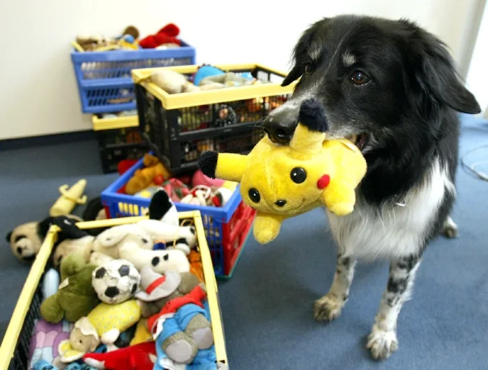 Это бордер-колли Рико. Считается одной из умнейших собак на планете. Видите игрушки в коробке? Так вот, всех их она знает наизусть и может принести по команде.