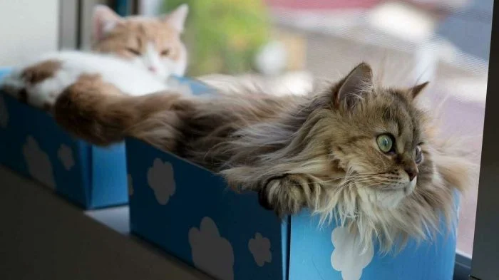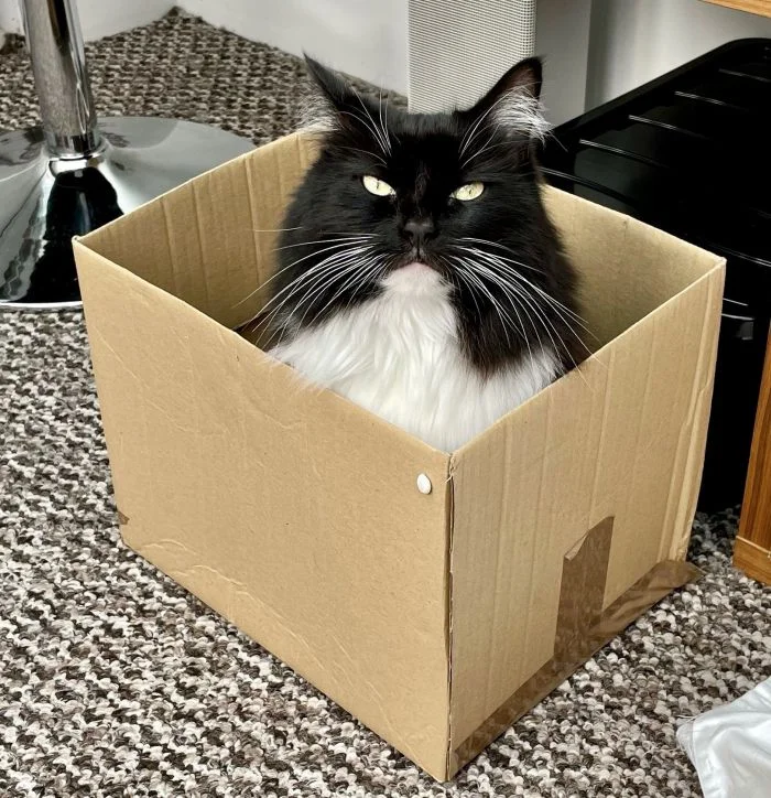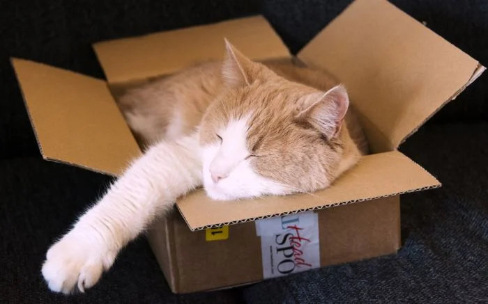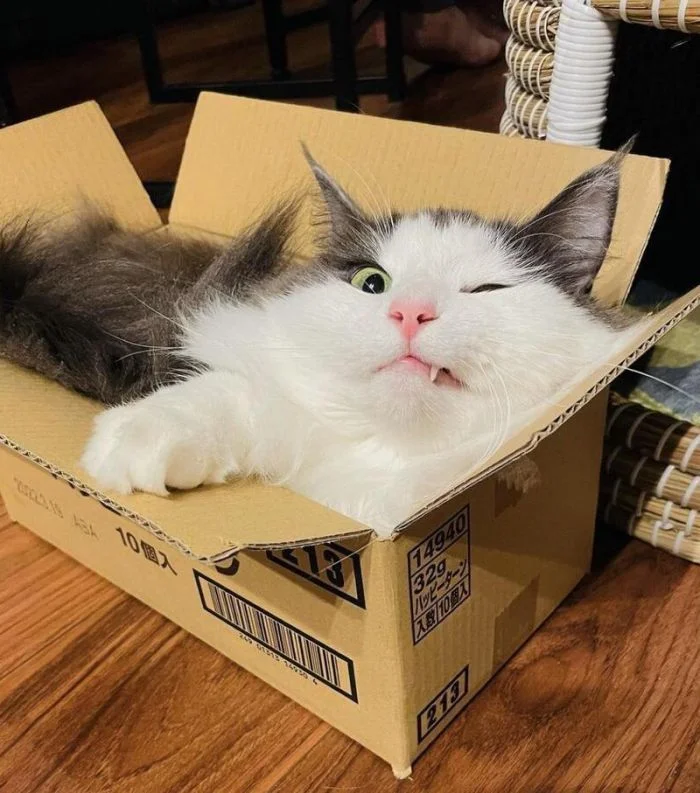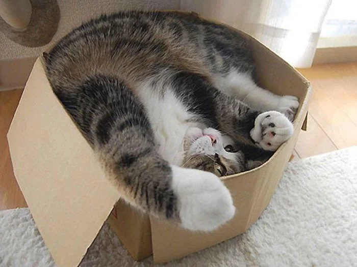 Чем пушистых привлекают обычные картонные коробки? Учёные считают, что причина в тепле и комфорте. А ещё кошки оборудуют внутри что-то типа кабинета психологической разгрузки, чтобы отдохнуть от повседневных дел. И поджидают добычу, помня о древних инстинктах, чтобы неожиданно и яростно атаковать хозяйскую ногу. Вне зависимости от причин выглядят эти хитрые создания более чем эффектно, особенно если учесть, что в коробку они лезут исключительно по собственной инициативе.
