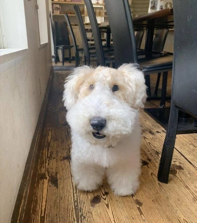 Моя жена думает, что это помесь жесткошёрстного фокстерьера и бишон фризе.
