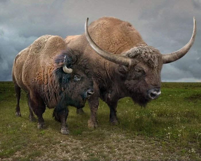 Но, как вы уже знаете, гигантские размеры и грозный вид совсем не гарантируют долгое процветание. Так вышло и с широколобыми бизонами. Примерно 20-30 тыс. лет назад их численность сходит на нет, а на смену им приходят менее крупные, но более приспособленные современные бизоны.