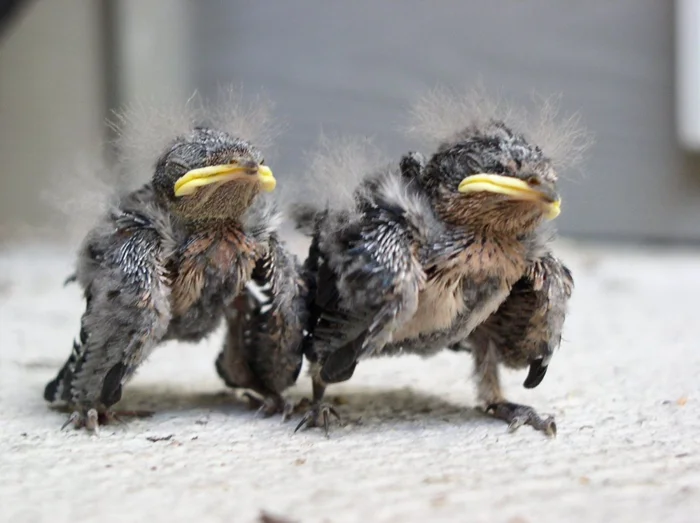 Кому ещё нужна помощь, так это пострадавшим более младшего возраста. В отличии от слётков, у них слабое тело, ноги не держат, взрослых перьев вообще нет, иногда они всё ещё полуголые и слепые. Если такой кроха оказался вне гнезда, его нужно спасать. С этим вам также помогут специалисты центра реабилитации.