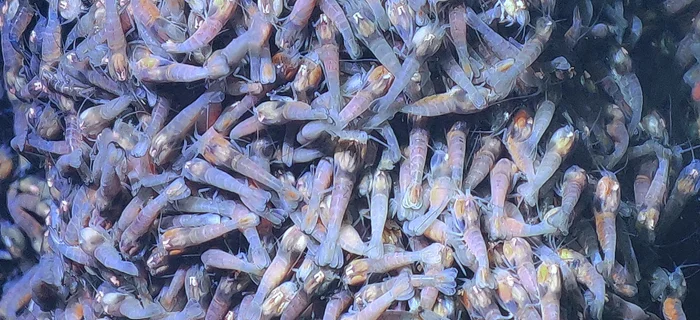Плотное скопление креветок у геотермального источника. Подберутся чуть ближе – сварятся в сверхгорячей воде. Отодвинутся подальше – замёрзнут.