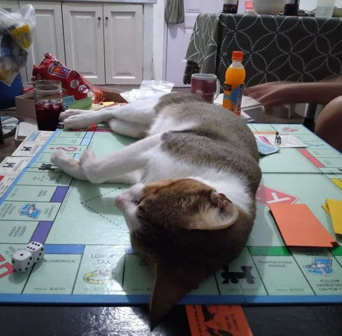 3. Ему нравится лежать перед дверью для кошек и кусать своих братьев и сестер, когда они пытаются пройти через нее
