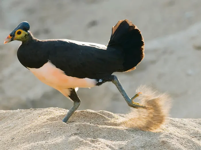 Закопав отпрысков и замаскировав их прибрежным мусором, родители разворачиваются и уходят! Больше своих детишек они никогда не увидят! Песок будет «высиживать» кладку сам — его температура стабильно держится на уровне 33-35 °C. А новорожденные цыплята полностью самостоятельны с первых минут жизни! Большие яйца малео несут не просто так: в них куда больше питательных веществ, чем в яйцах обычных куриц. Птенец, только-только выбравшись из песка, и пищу себе сам найдёт, и убежит куда следует, и даже летать может!