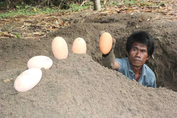 Именно здесь находится стабильный источник тепла — геотермальная энергия. А ещё на берегу удобно зарыть яйца так, чтобы их никто не заметил. Выкопав глубокую яму, самка откладывает всего пару яичек. Нестись как домашние рябушки малео не в состоянии — их яйца в 5 раз больше куриных! При том, что размер взрослой птицы не больше стандартного бройлера.