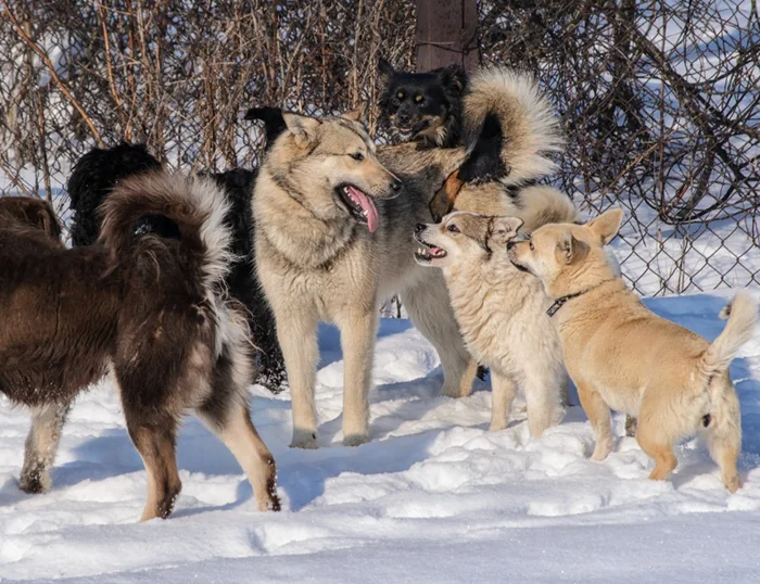 Когда безопасных мест нет, а стая уже вот она, постарайтесь оценить вашу ситуацию и продумать варианты действий. Лицом к стае отойдите к ближайшему дереву, машине, стене. Прикройте тыл, чтобы свора не смогла вас окружить. Если стая находится на расстоянии броска, и при этом собаки смотрят прямо на вас, идут в вашу сторону, рычат и лают — резко наклонитесь, будто берёте камень, замахнитесь и крикните что-то очень громкое и гневное. Не помогло? Уже по-настоящему возьмите камень, а лучше горстку мелких камней, бросьте под ноги собакам и снова крикните.