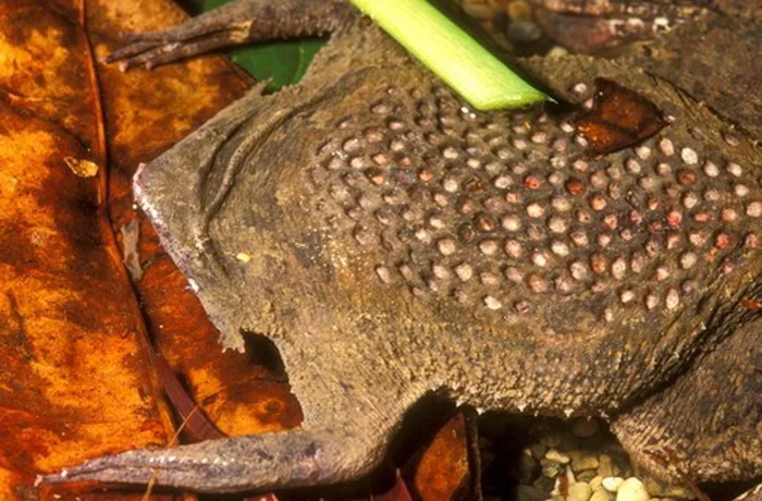 Несмотря на отталкивающий внешний вид, суринамские пипы являются заботливыми матерями, которые вынашивают своих маленьких деток буквально на своей спине.
