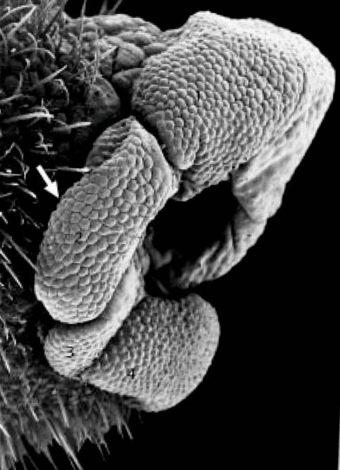 Кончик хоботка нашего обыкновенного крота под большим увеличением: пупырышки и есть те самые специальные органы осязания — Эймеровы органы.