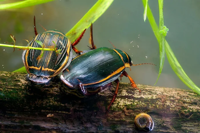 Плавунцы — маневренные и быстрые ныряльщики. Они терроризируют не только тех, кто меньше и слабее, но и соразмерных противников: мальки рыб, головастики, личинки насекомых — все микро-обитатели водоёма оказываются под угрозой. Совершать разорительные набеги жуку помогают мощные жвала и мускулистые лапы, из хватки которых уже не вырваться.