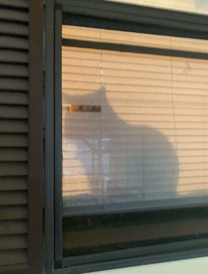 3. "Моя кошка сделала эту дырку в жалюзи. Не понимал, зачем она это сделала, пока не увидел это"