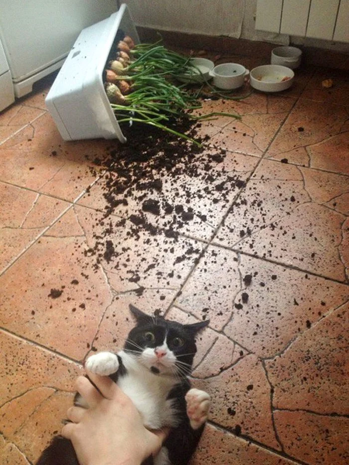 8. "Моя кошка перевернула два цветка. Это всё потому, что я не покормила её вовремя"