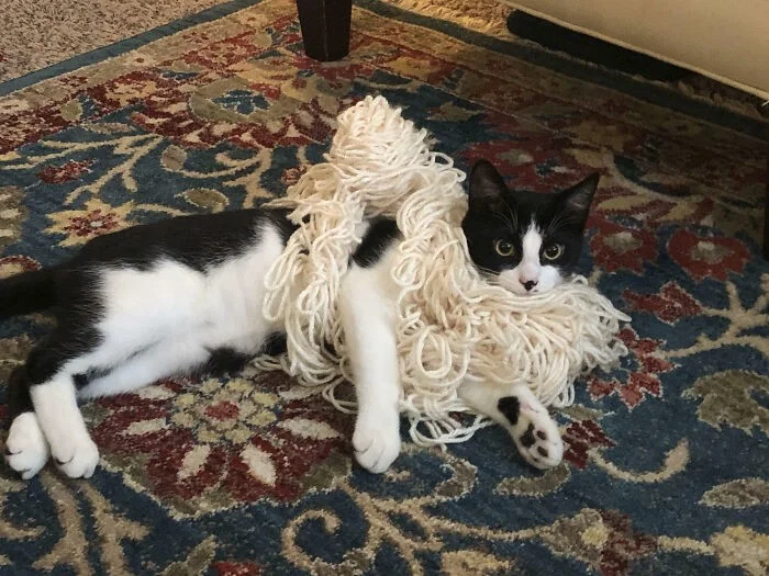2. Кот порвал огромный пакет с кошачьей мятой. Даёшь вечеринку!