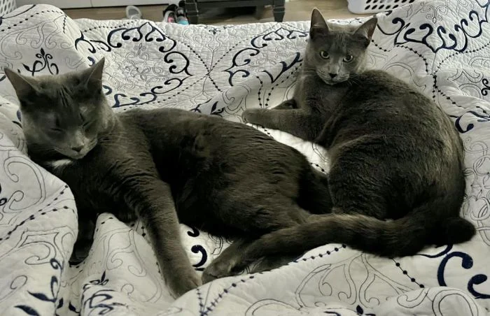 "Забрала кошку 2 недели назад. Ей 9 лет, и она самая милая кошка из всех, что у меня были. Она станет моей помощницей в колледже, так как у меня ужасные проблемы со сном и тревожность. У нее есть проблемы со здоровьем, но я всегда мечтала о пожилой кошке, которой я смогу дарить свою любовь. Она любит обниматься и влажный корм (особенно в качестве награды после лекарств!) и такая спокойная".