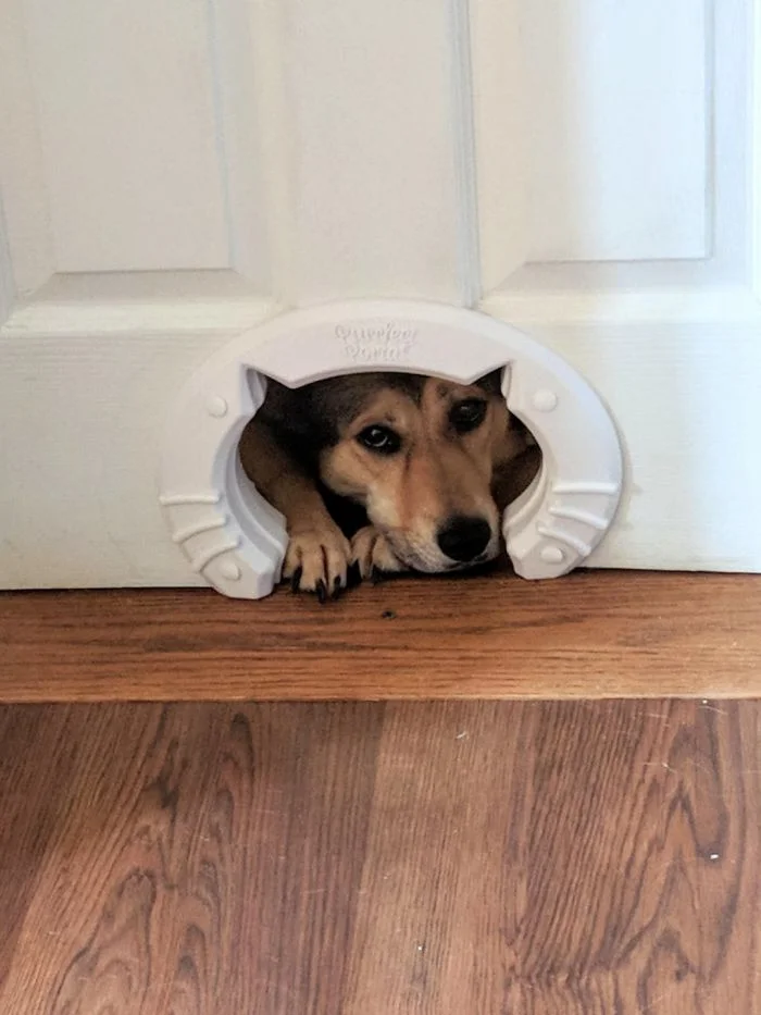 13. Эта дверь предназначалась для кошки, но ему всё равно, он ждёт маму