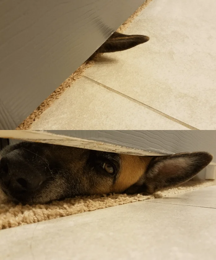 13. Эта дверь предназначалась для кошки, но ему всё равно, он ждёт маму