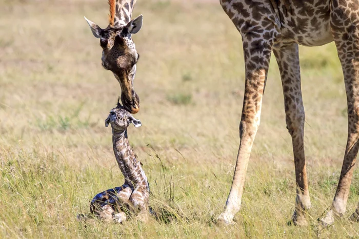 Новорождённый жираф прочно встаёт на ноги уже через 3-5 часов после рождения. А ведь во время родов он падает с двухметровой высоты!