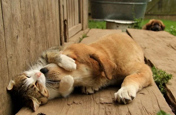 Но объятия – это не только про людей. Братья наши меньшие тоже частенько их используют. И не только в отношении представителей своего вида. Выглядят пушистые обнимашки невероятно искренне, трогательно и нежно.