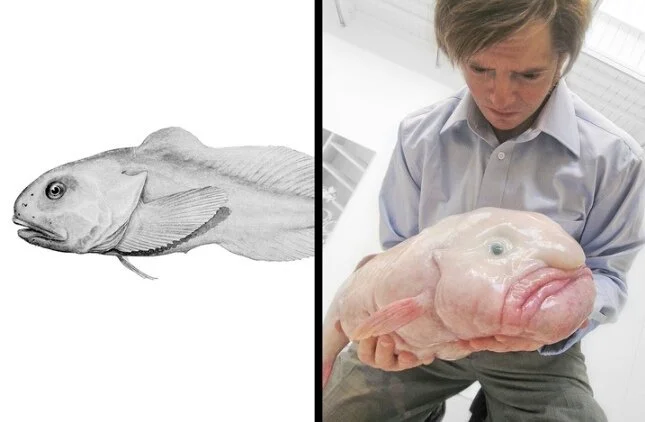 Так что все эти мемные фотки грустных желеобразных страшилищ показывают нам не настоящую рыбу-каплю, как она есть, а то, что происходит с тушкой этого создания после её подъема на поверхность. Понимаете теперь, почему на фотках они такие страшные? Просто вся их анатомия до последней клеточки заточена под глубоководную жизнь, но никак — для поверхности!