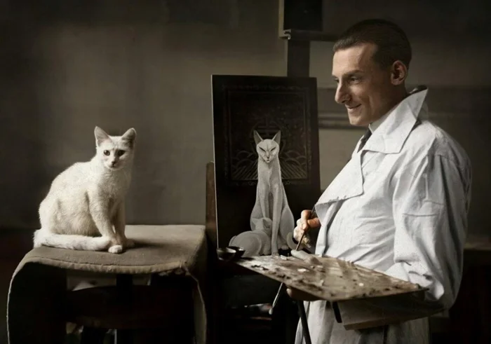 Французский художник Жак Леманн рисует портрет своего кота, 1924 год.