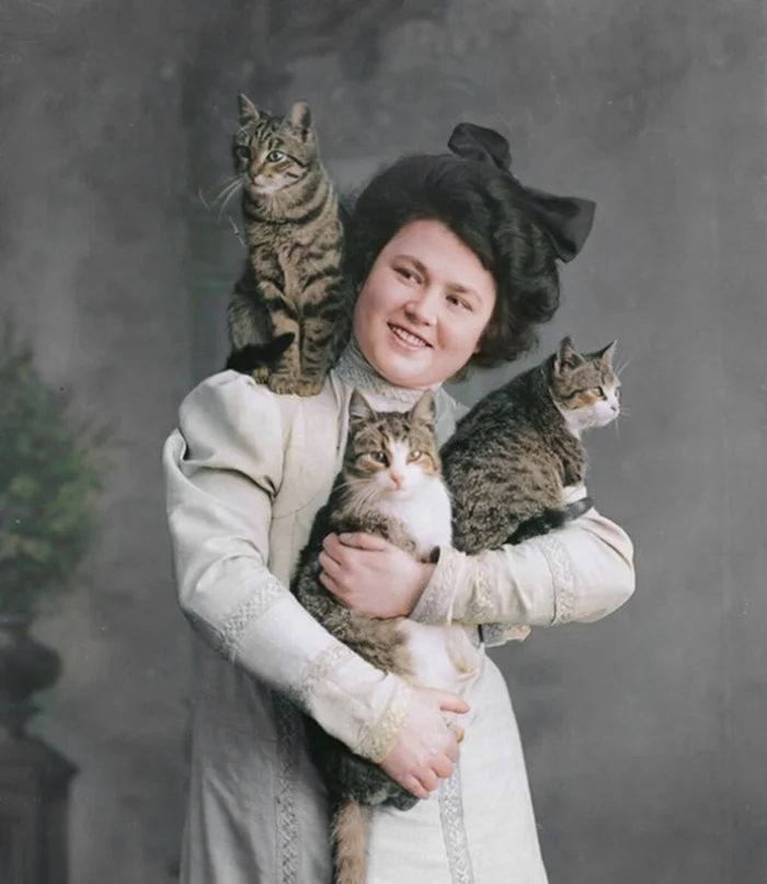 Все любят котиков, все от них без ума — так было всегда. И даже во времена, когда не было никаких социальных сетей и интернета люди снимали своих пушистых друзей на фотокарточки.