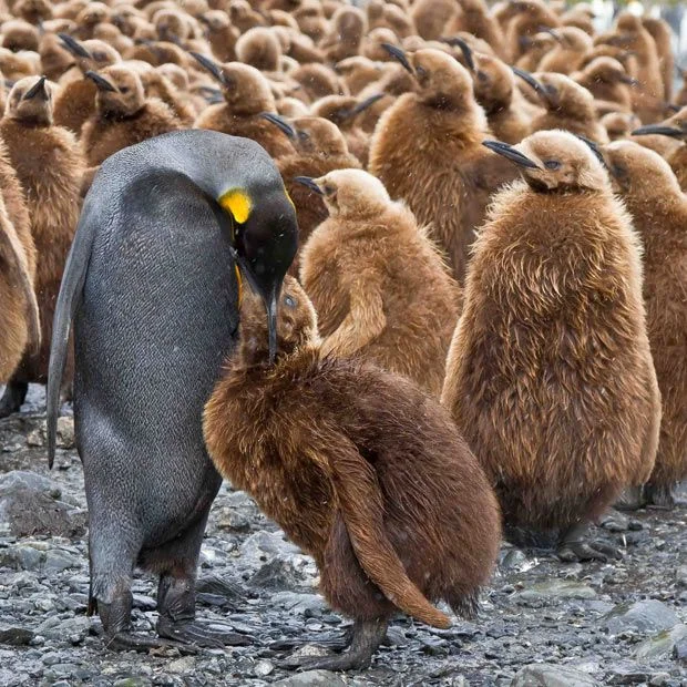 Чисто для сравнения: так выглядят императорские пингвины со своими птенцами.
