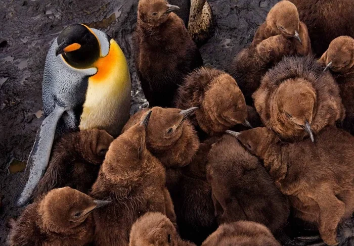 Несколько взрослых самок собирают вокруг себя десятки птенцов и приглядывают за ними, чтобы никто не погиб и не сбежал. В условиях субантарктических морозов по-другому никак. У хищников вечный дефицит калорий, клювами они щёлкать не будут.