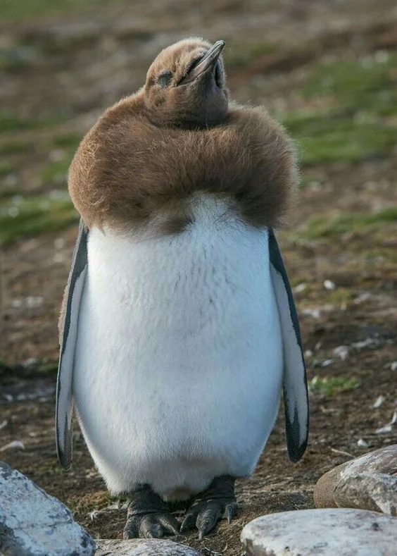 На первый взгляд ответ прост. Птенцы взрослеют неслыханно долго — 16 месяцев. Это в 3-4 раза дольше птенцов других пингвинов. Их родственники умудряются вырастить детей за богатый на улов сезон. У королевских птиц такое не прокатывает, поэтому их дети вынуждены быть крупными и упитанными. В голодные месяцы родители не возвращаются неделями, и малыши живут на подкожных жировых запасах.