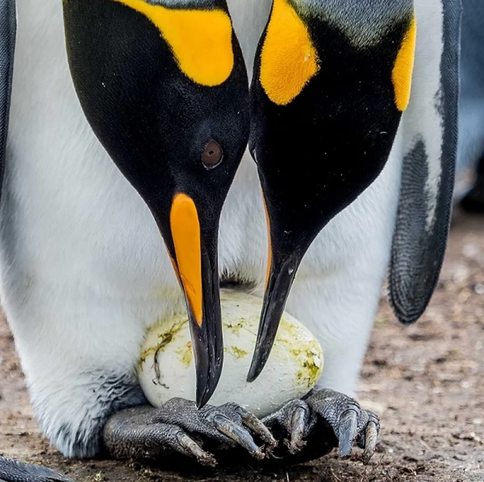 Яйца у королевских пингвинов большие, до 300 грамм веса. Родители прилагают все усилия, чтобы яйцо не касалось земли, ведь на холодной почве эмбрион может погибнуть.