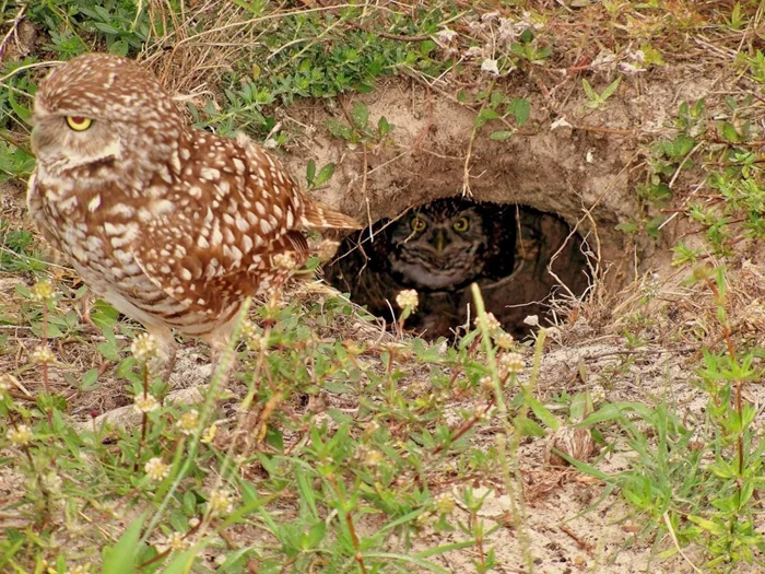 Начнём по порядку. В первую очередь надо упомянуть болотную сову — вот уж кто деревья в плане жилища игнорирует. Даже в имени отражено нечто эдакое, намекающее на болотную кочку. За ней идёт товарищ домовый сыч. Он может селиться, конечно, в постройках и местах повыше, но норы, пни и щели в каменных насыпях — ещё одна его любовь.