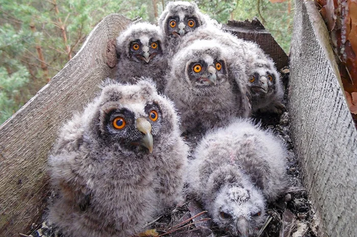 Распознать вид малыша не специалисту — почти нереально. Поэтому, если увидите совят, поищите вокруг признаки гнезда. Постоянное жилище выдаст примятая вокруг трава, веточки, хорошо различимая ямка и отходы жизнедеятельности. Не спешите тащить таких совят спасать. Скорее всего, они уже дома!
