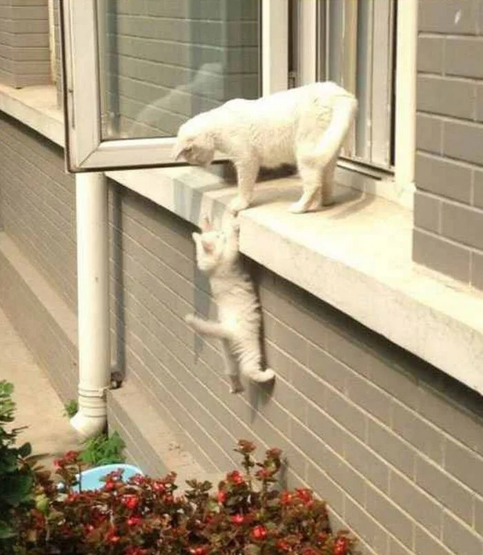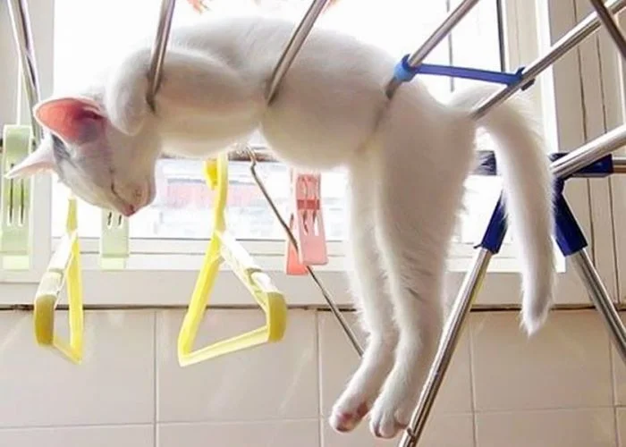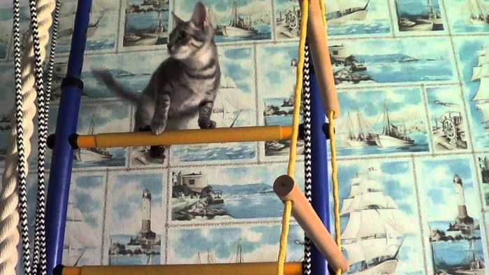 Эту разновидность, развивающую координацию и помогающую объединять мыслительную, эмоциональную и физическую активность тела, подразделяют на две дисциплины – боулдеринг и лазание по канату. С первым у котиков могут возникать проблемы, ибо лапки. А случае со вторым хвостатым спортсменам нет равных. Можно даже специально для этих целей канаты по всему дому развесить и наблюдать за передвижениями ловкого спортсмена, если на улицу с деревьями ходить не хочется. Котики – они такие спортивные. Главное, поймать и запечатлеть момент, когда им не лениво тренироваться.