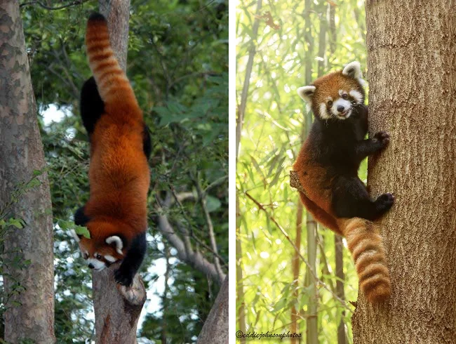 В отличие от кошек, красные панды никогда не застрянут на деревьях! Потому что они умеют спускаться вниз головой. Суставы лап выворачиваются в самые разные стороны, благодаря чему зверь спокойно передвигается даже по тоненьким веточкам.