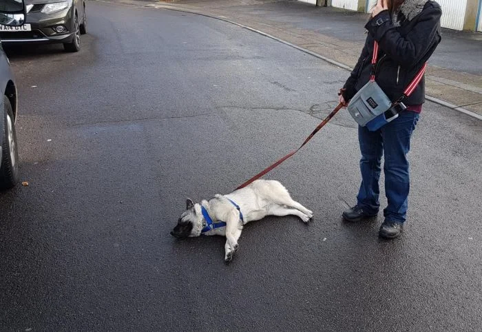 16. Когда моя собака не хочет идти домой, она ложится и не двигается