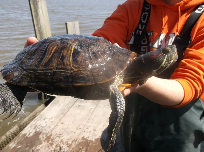 Ещё один вид-захватчик подкрался незаметно. Как ниндзя. Потому что это — черепаха. Та самая красноушка, что продаётся во всех зоомагазинах. А всё из-за казуса, с которым сталкивалась каждая вторая семья в нашей стране. Родитель, одурманенный обещаниями продавца, покупает рептилию любимому ребёнку. Ведь это — чудо, а не питомец! Ухаживать за ним почти не нужно, расти он не будет, агрессии не проявляет.
