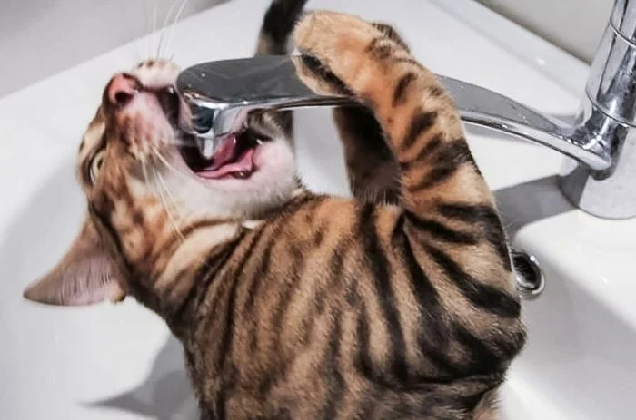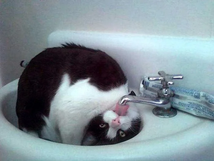 Водопроводная вода, действительно, не самый полезный продукт. Но котики считают, что это правильно, удобно и очень вкусно. Одни питомцы прибегают к такому способу периодически, а другие упорно требуют открывать им кран с определённым напором. В любом случае фото такого кошачьего водопоя получаются умилительными и трогательными.