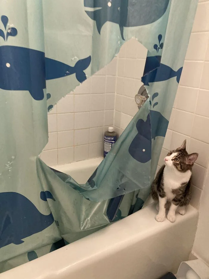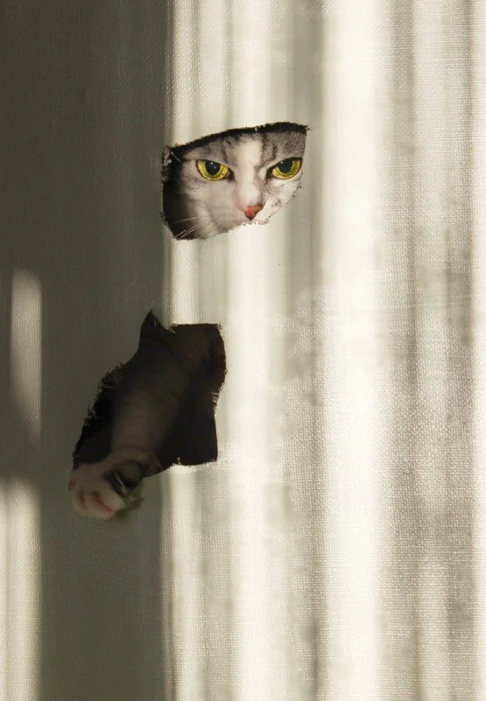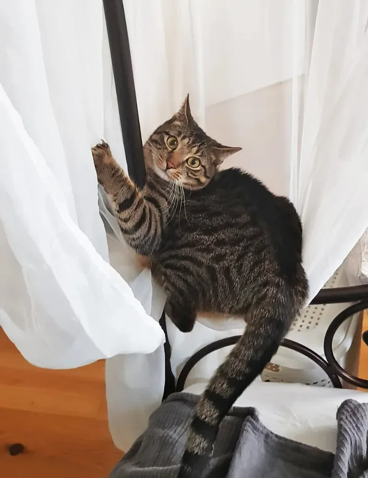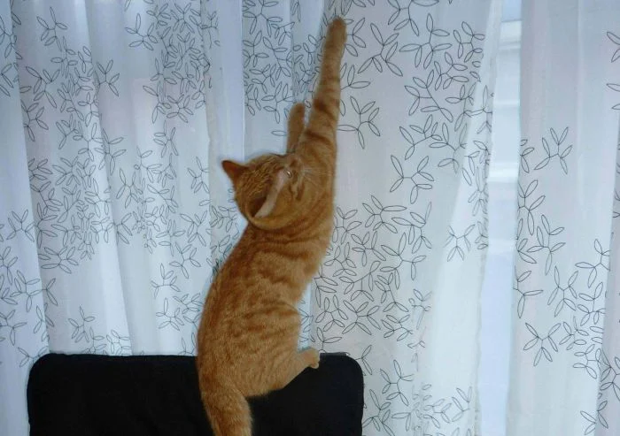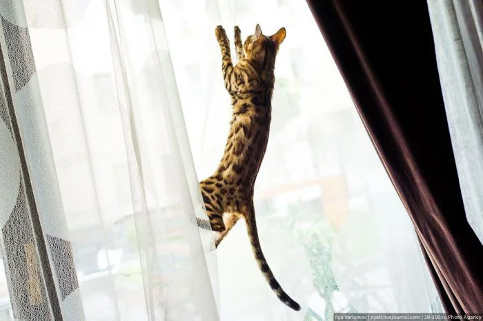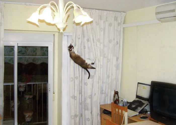 Их задача – скрыть домашний быт от глаз посторонних, сделать помещение уютным и преобразить интерьер. Хозяева обычно тщательно выбирают подходящие шторы. Но их могут забраковать домашние дизайнеры – котики, которые почему-то не прочь покататься на занавесках, подправить стилистическое решение шторы в ванной и превратить тюль в подобие бахромы. Но есть три жирных плюса – шторы можно сменить на ещё более крутые, сделать эпичные фоточки и, конечно, подарить хвостатым дизайнерам минутку радости.