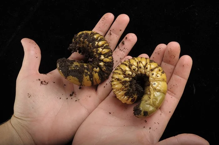 Истинным бойцовым характером у атласных жуков славятся не столько взрослые особи, сколько личинки. Это миленькие малютки размером с большой палец взрослого человека. Питаются они компостом и кажутся абсолютно безобидными. Но тетешкать такую лялечку на руках не стоит: если вы попробуете прикоснуться к жучьему ребенку, он настойчиво потребует оставить его в покое мощным укусом.