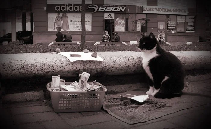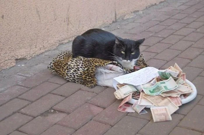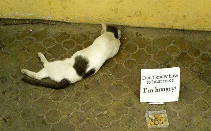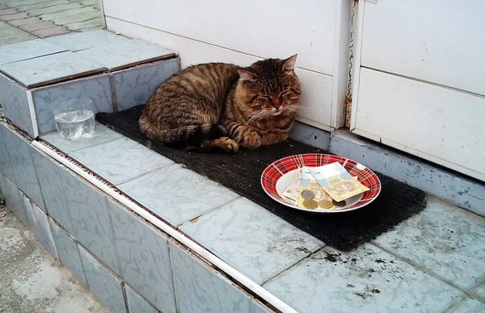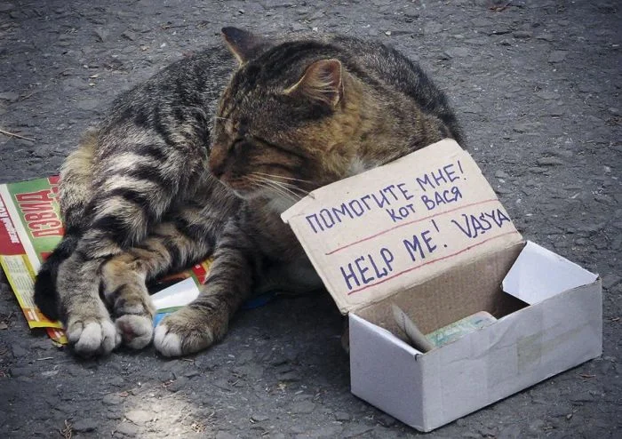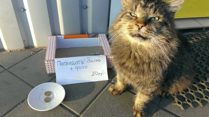 Но есть и ещё одна тактика. Тихой сапой, скромностью и убедительно дрожащими слезами в глазах, а порой ледяным спокойствием и безразличием к результатам действуют котики. Тактика правильная, ведь пушистые хитрюги практически всегда добиваются желаемого. А ещё талантами хвостатых артистов нередко пользуются креативные граждане. И результатом креатива становятся смешные фотки.