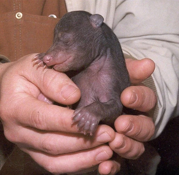 Как мы поняли из предыдущего пункта, медвежата появляются на свет через 2 месяца беременности. Естественно, за такой короткий срок малыши не успевают полноценно развиться. Как итог, новоявленный косолапик весит примерно как щенок собаки среднего размера, грамм 500. И это — очень низкий вес относительно взрослой особи. Только представьте, новорожденные медвежата в 1500 раз легче, чем взрослые! Для сравнения, человеческие малыши легче взрослых всего в 20-30 раз.